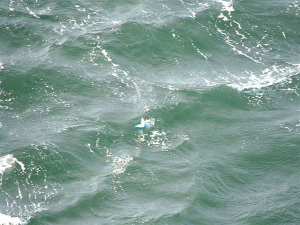 SF-282-MIM gul. søsat af styrmanden fra MS Bergensfjord 24 sept kl.4,58 Skagerak